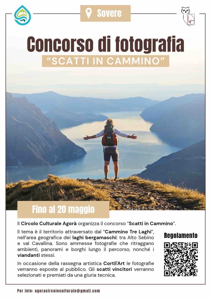 Il tema è il territorio attraversato dal “Cammino Tre Laghi”, nell’area geografica dei laghi bergamaschi: tra Alto Sebino e val Cavallina. Sono ammesse fotografie che ritraggano ambienti, panorami e borghi lungo il percorso, nonché i viandanti stessi.